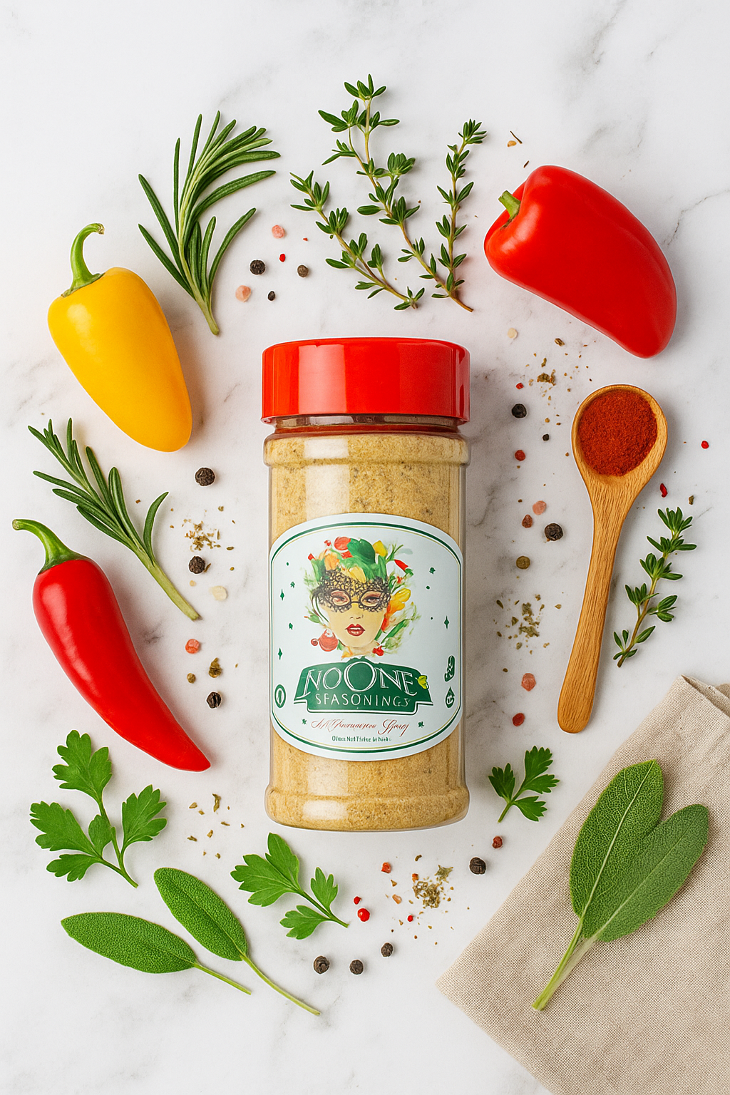 Turn up the heat on every meal with NOONE Seasoning’s All-Purpose Spicy Blend! A perfect balance of bold spices, smoky undertones, and just the right kick of heat, this blend is your go to for adding instant flavor to meats, veggies, seafood, and even snacks. Whether you’re grilling, roasting, or sprinkling it over popcorn, NOONE Seasoning brings the spice without overpowering the taste just pure, mouthwatering goodness!